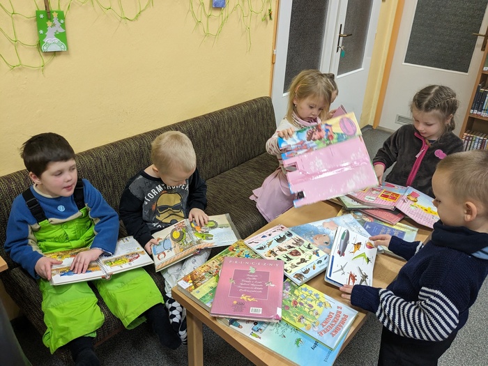 V úterý 23. 1. 2024 děti ze tříd Koťátka a Žabičky navštívily místní knihovnu. Paní knihovnice měla pro děti připravený výklad o dětských knížkách, pohádkové hádanky a také jim přečetla kratičký úryvek z knížky. Děti pak měly možnost se po knihovně porozhlédnout a každý si mohl vybrat knížku podle své chuti. Dětem se návštěva moc líbila a paní knihovnice se může těšit na nové malé čtenáře. Děkujeme paní knihovnici Sojové za umožnění návštěvy a těšíme se na další.