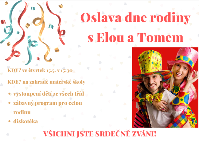 Úvod > O škole > Akce školky > Oslava dne rodiny s Elou a Tomem